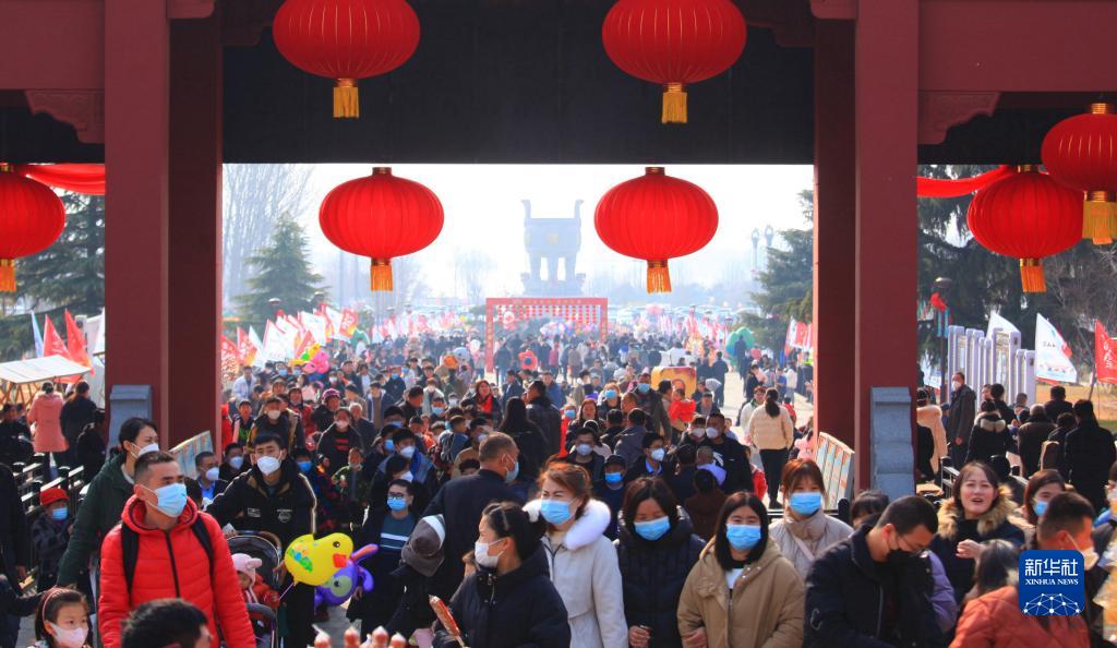 1月22日,游人在山東省臨沂市沂蒙山龜蒙景區新春廟會上游玩。