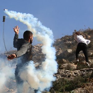 1月27日,在約旦河西岸城市納布盧斯東部村莊拜特代堅,巴勒斯坦抗議者與以色列士兵發生沖突。