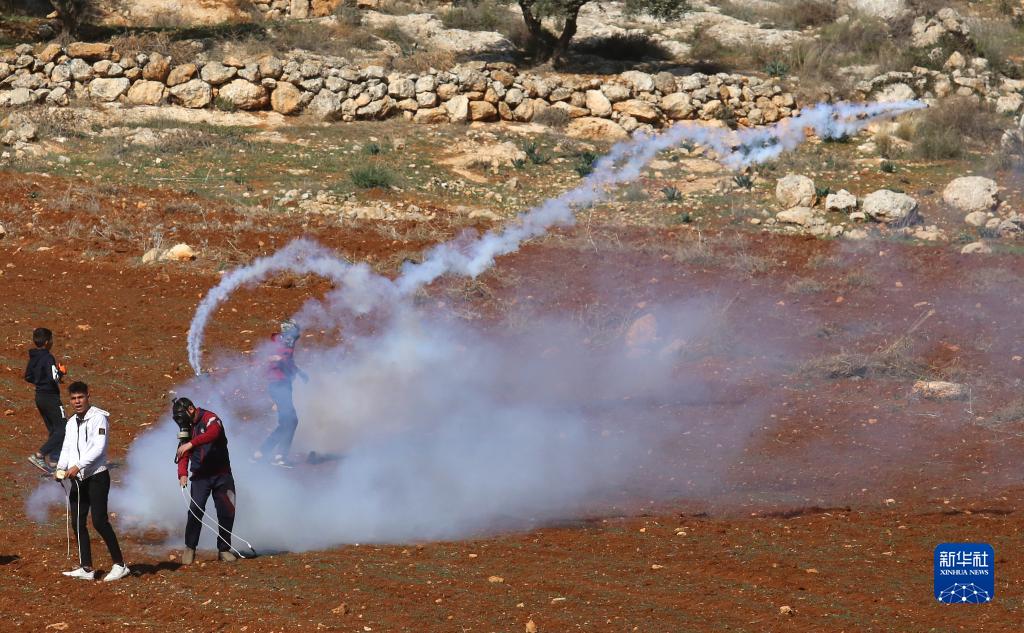 1月27日,在約旦河西岸城市納布盧斯東部村莊拜特代堅,巴勒斯坦抗議者與以色列士兵發生沖突。