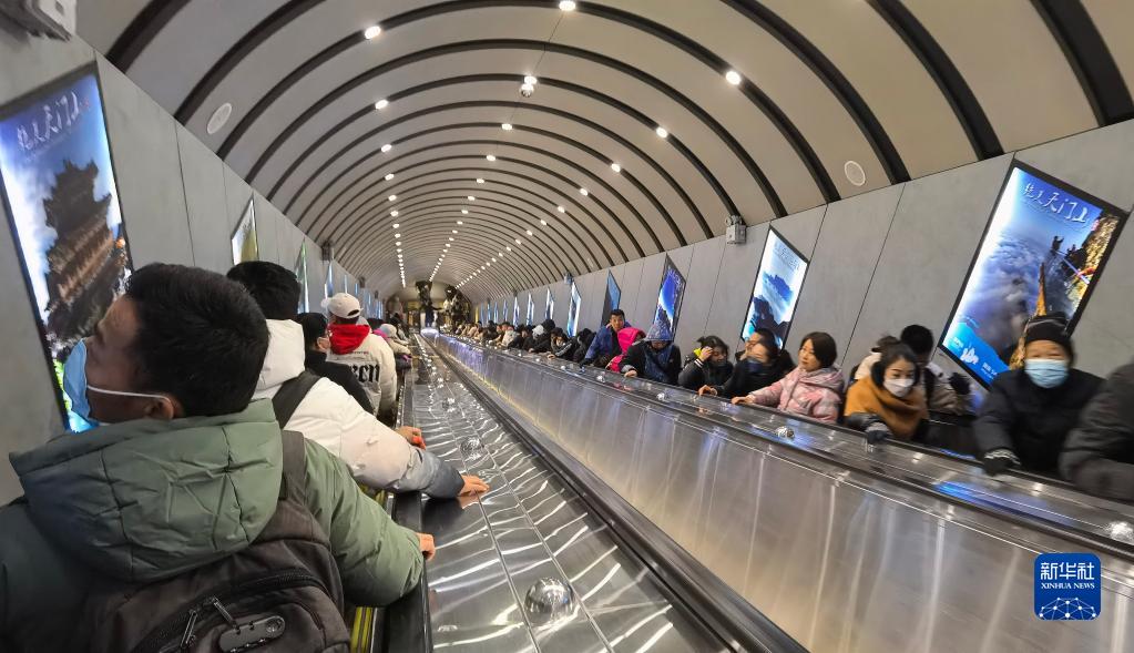 1月26日,游客在張家界天門山景區乘坐電梯。
