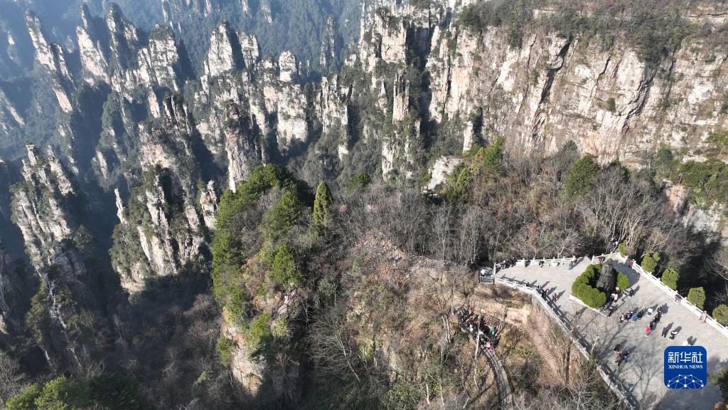 1月27日,游客在張家界國家森林公園游覽(無人機照片)。