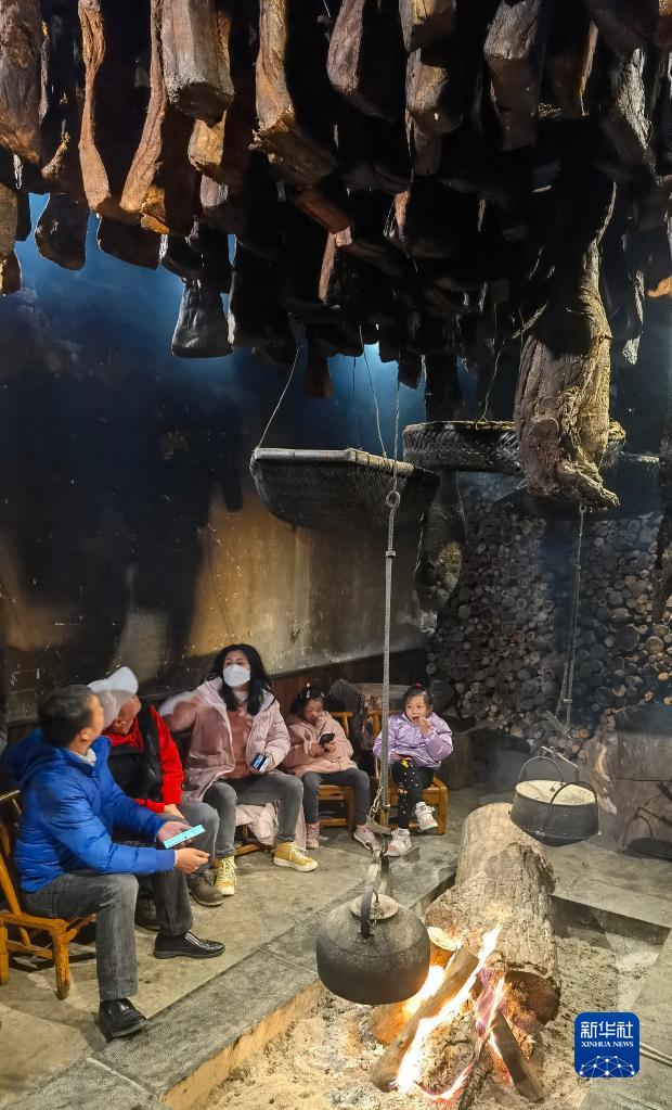 1月26日,人們在張家界武陵源的一家餐館等待就餐。