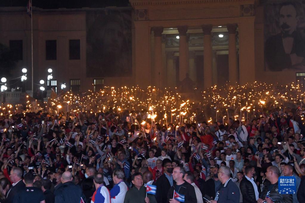 1月27日晚,古巴民眾在首都哈瓦那參加紀念何塞·馬蒂誕辰170周年活動。