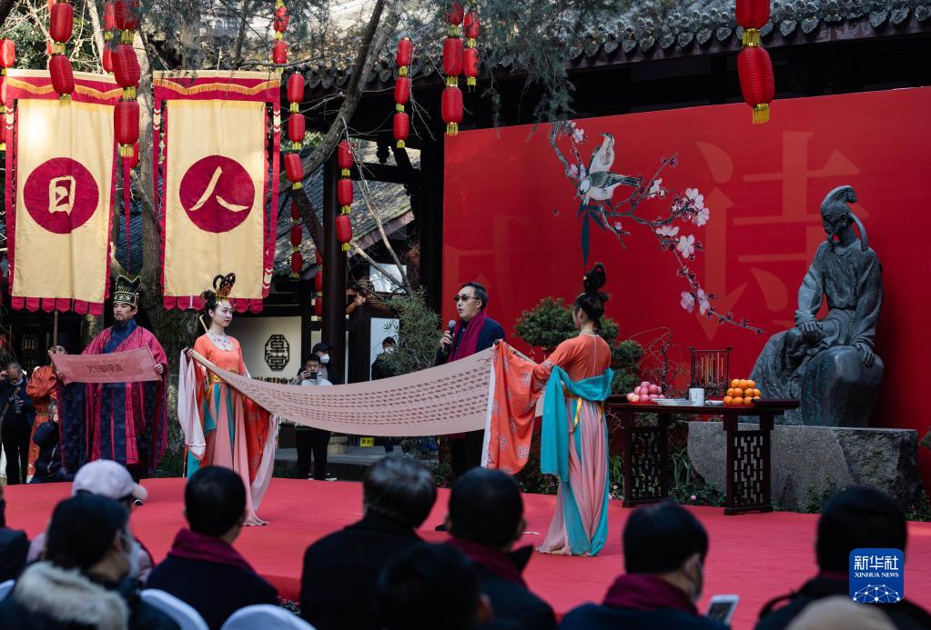 當日是農歷正月初七,又稱“人日”,一年一度的“人日”游草堂、祭拜詩圣杜甫活動在成都杜甫草堂舉行。社會各界群眾齊聚草堂大雅堂前,舉行祭拜儀式和詩會,祭拜先賢,緬懷詩圣,弘揚中華優秀傳統文化。