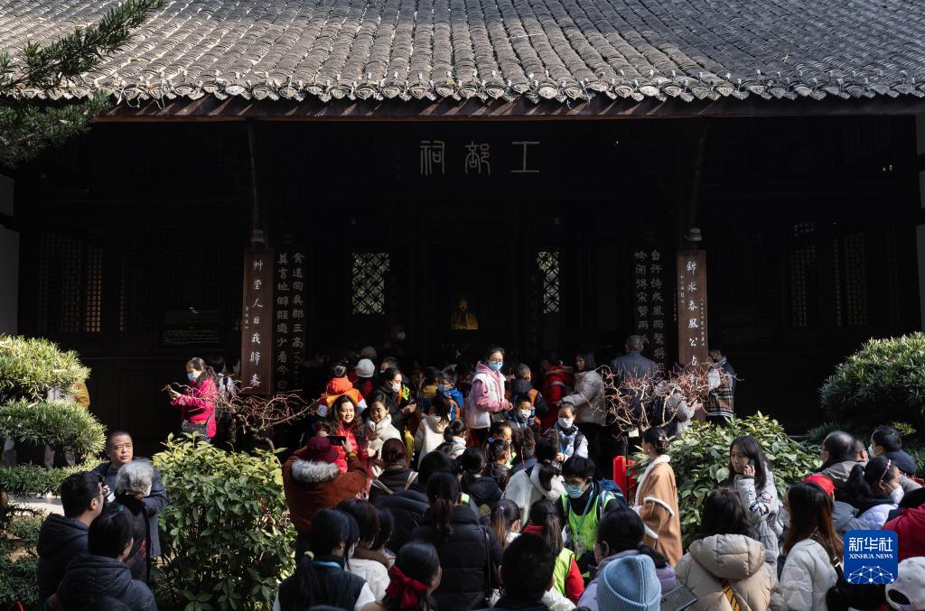 1月28日,游客在四川成都杜甫草堂游覽。