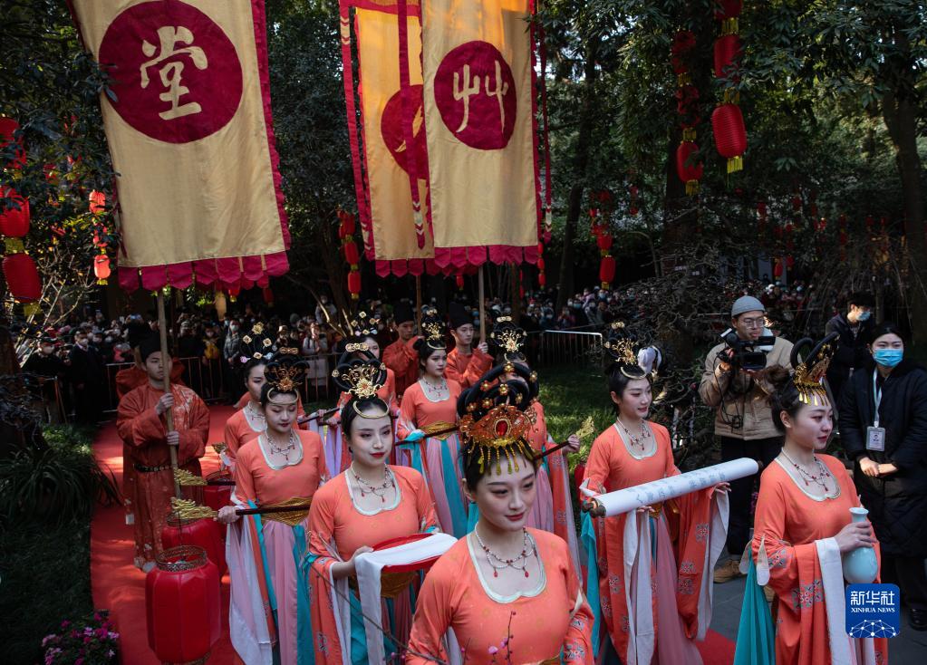 1月28日,在四川成都舉行的“人日”游草堂、祭拜詩圣杜甫活動現場,主祭隊伍入場。