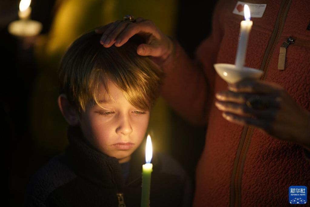 1月27日,一個男孩在美國加利福尼亞州半月灣市舉行的守夜活動中哀悼槍擊事件遇難者。
