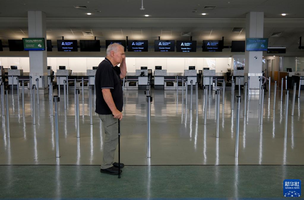 1月28日,在新西蘭奧克蘭國際機場,一名老人站在空蕩蕩的國際出發大廳。