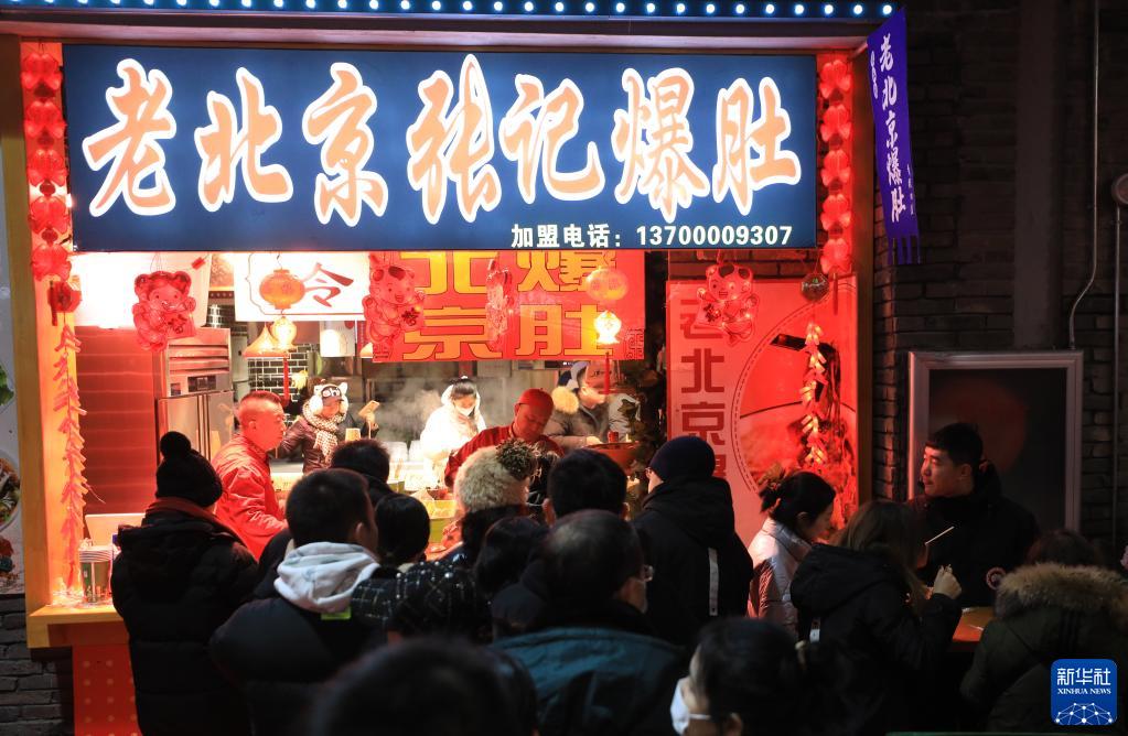1月23日,市民在沈陽新春皇寺廟會品嘗美食。
