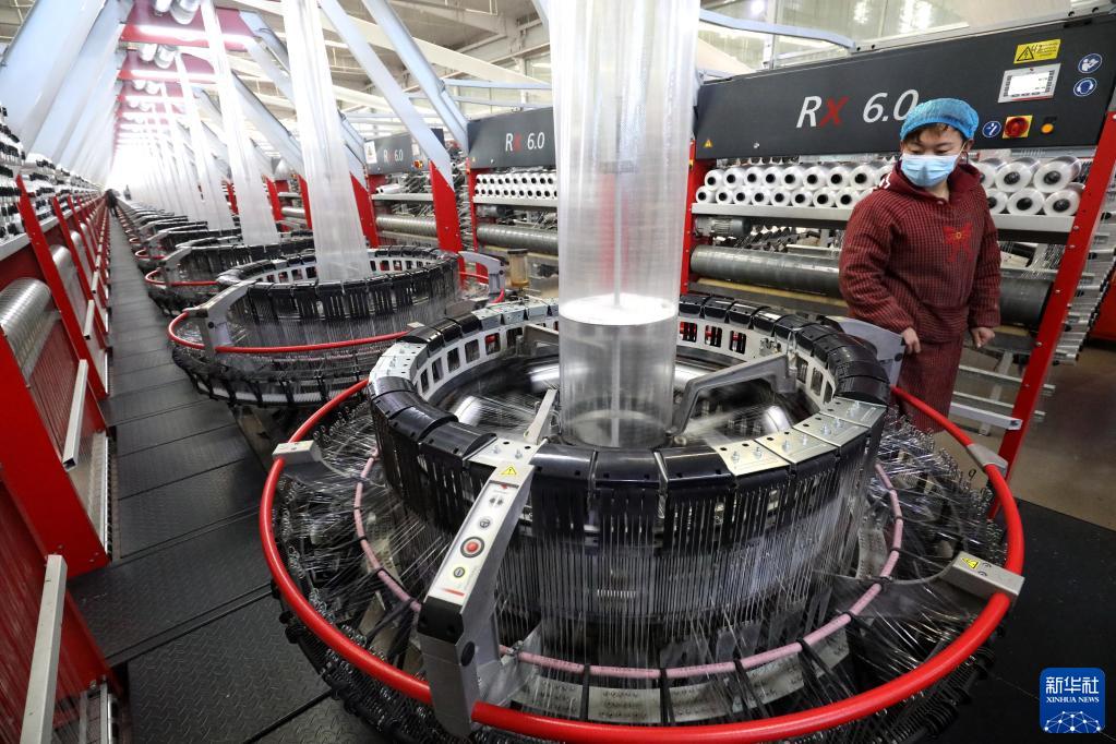 1月28日,工人在河北行唐經濟開發區一家包裝袋生產企業忙碌。