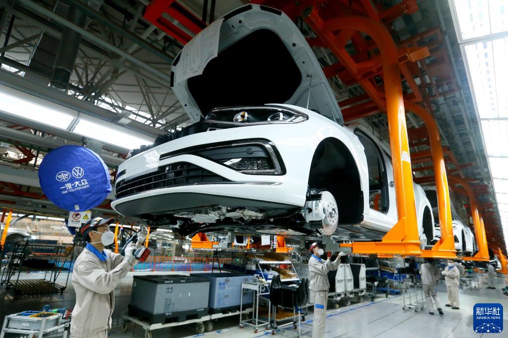 1月28日,工人在山東省青島市即墨區一家汽車制造企業車間裝配汽車。
