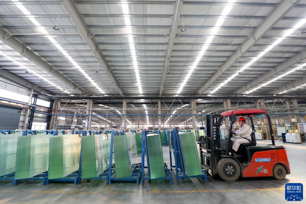 1月28日,在位于湖南資興經濟開發區的旗濱光伏光電玻璃有限公司,工人在光伏組件高透基板材料生產車間忙碌。