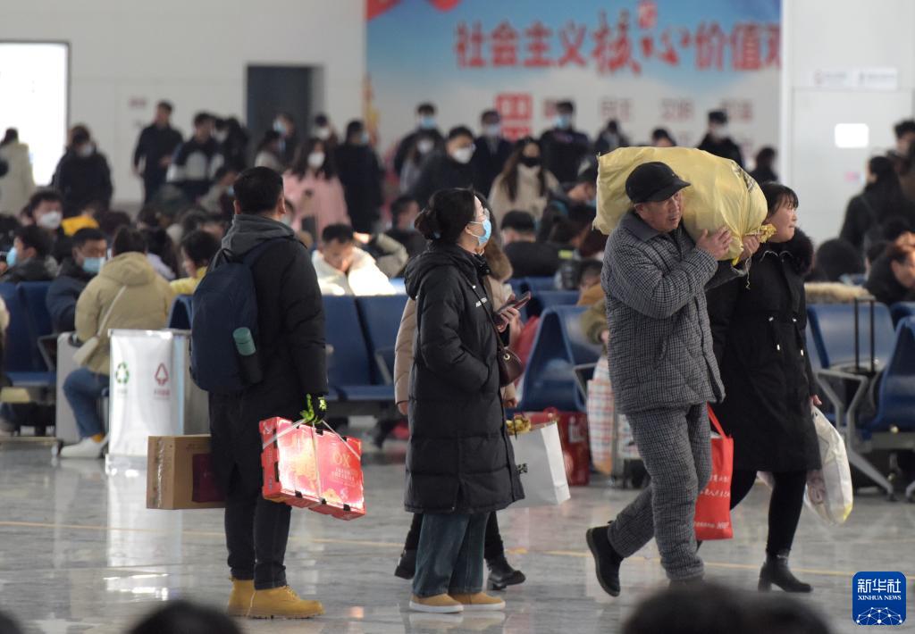 1月27日,在安徽阜陽西站,旅客進站準備乘車。