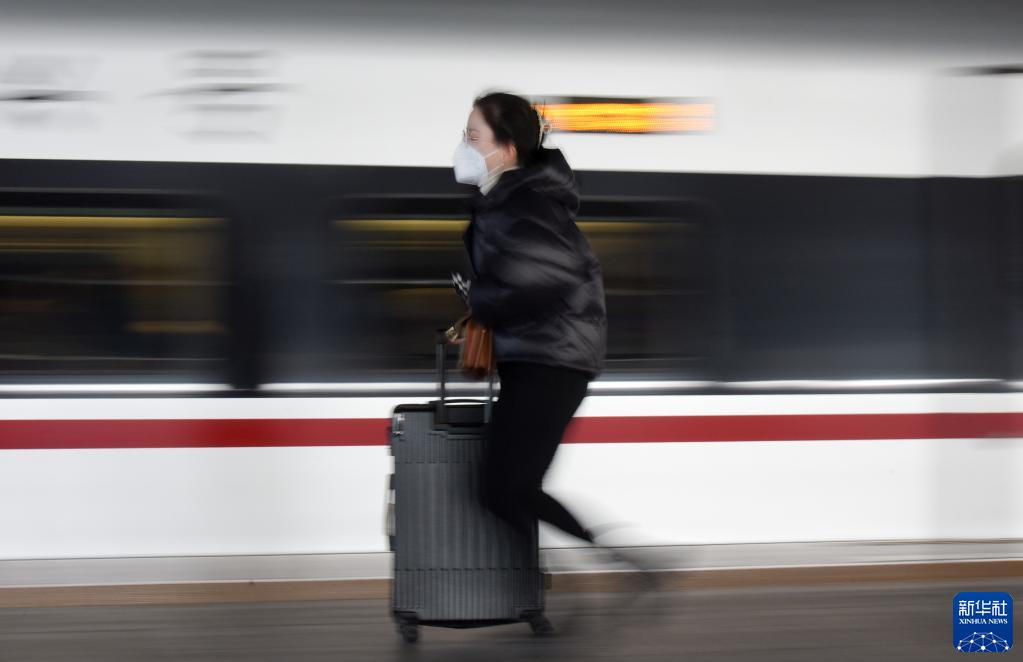 1月27日,一名旅客在安徽阜陽西站準備乘車。