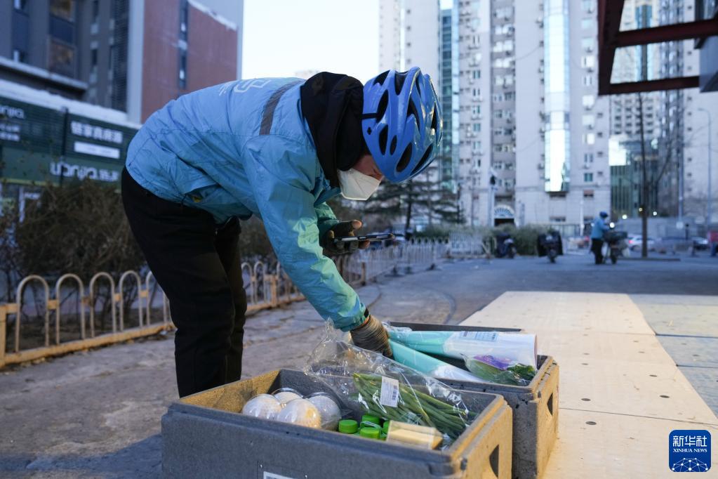 1月28日,在盒馬鮮生北京十里堡店,配送員侯殿彬在仔細核對要配送的第一單商品。