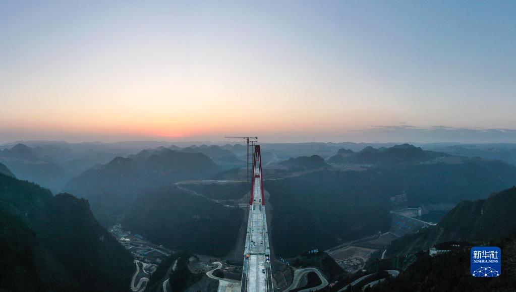 新春時節,貴州省龍里縣天氣晴好,建設中的龍里河大橋沐浴在晨光中,雄渾壯觀。龍里河大橋位于貴州省龍里縣境內,全長1260米,項目建成后將更好地服務當地旅游業發展和山區群眾出行。