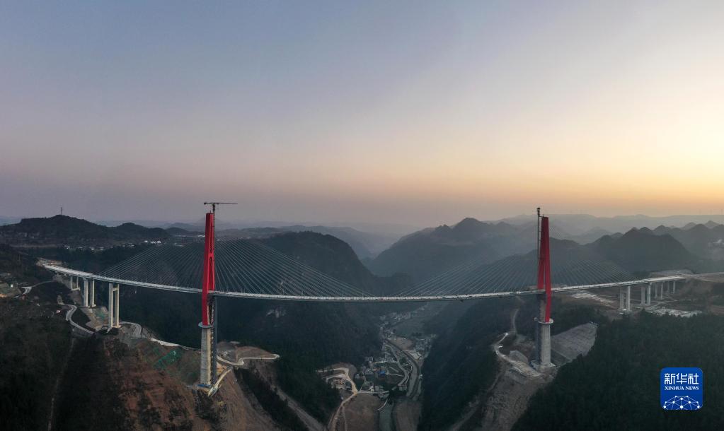 新春時節,貴州省龍里縣天氣晴好,建設中的龍里河大橋沐浴在晨光中,雄渾壯觀。龍里河大橋位于貴州省龍里縣境內,全長1260米,項目建成后將更好地服務當地旅游業發展和山區群眾出行。
