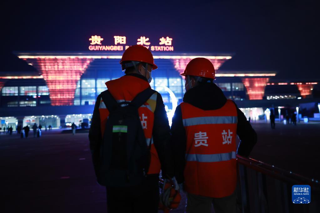 凌晨時分,在當天最后一列高鐵停運后,貴陽北站內依然有許多工作人員堅守崗位。調度員、保潔員、設備管理員們在夜色中穿梭,用辛勤的勞動保障春運安全。