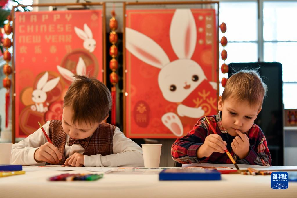 當日,莫斯科市郊的中共六大會址常設展覽館舉辦“歡樂春節”活動,人們參與剪紙、繪畫、茶藝、雕版印刷等多種體驗項目,共慶歡樂中國年。