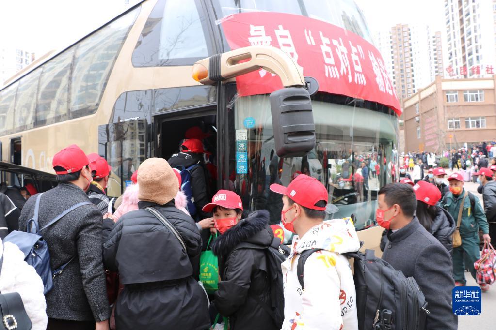 云南省彝良縣組織務工人員乘坐“務工專車”返崗復工(1月27日攝)。