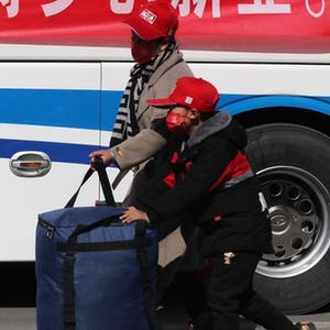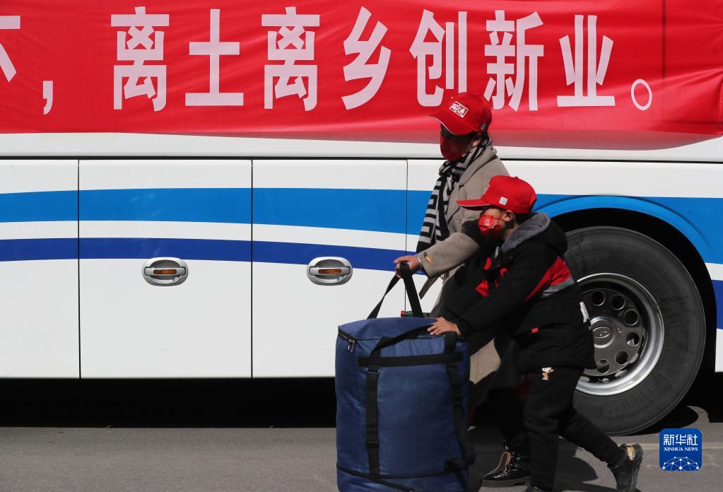 1月29日,云南省昭通市昭陽區外出務工人員準備乘坐當地政府組織的集中輸送外出務工人員專車返程。