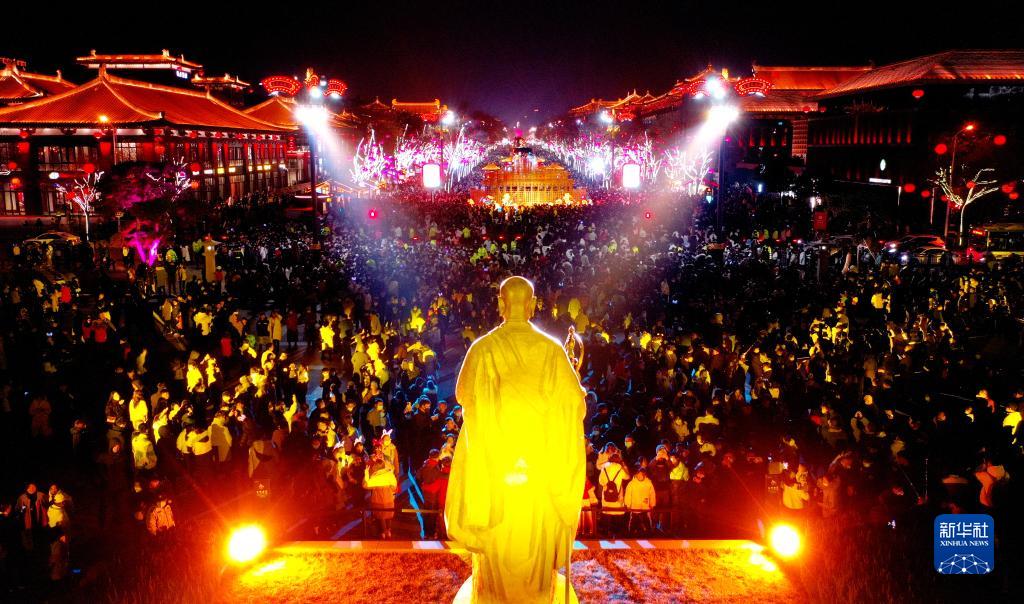 這是1月28日在西安大雁塔南廣場拍攝的景象(無人機照片)。