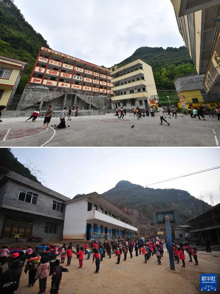 拼版照片:上圖為2022年5月19日拍攝的弄勇小學;下圖為2013年12月19日拍攝的弄勇小學。