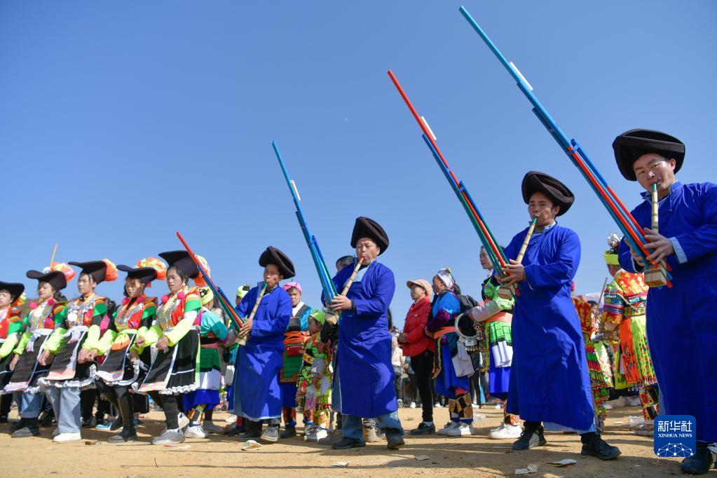 1月29日,苗族群眾在中排村參加“跳月”活動。