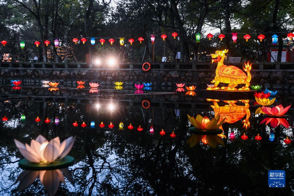 1月29日,在嘉興市秀洲區新塍古鎮小蓬萊公園內,“鰲山燈會”的彩燈正式點亮。
