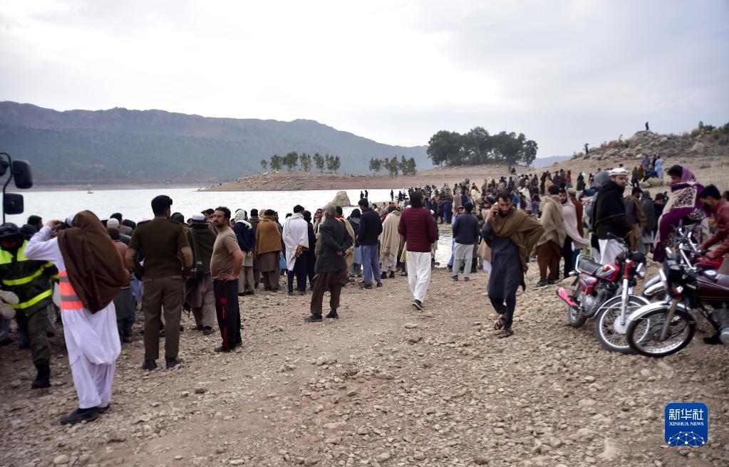 1月29日,人們聚集在巴基斯坦開伯爾-普什圖省科哈特地區的船只傾覆事故現場。