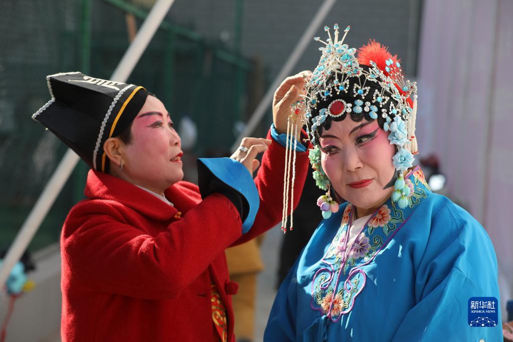 1月29日,在溫縣文化廣場,演員在演出前化裝。