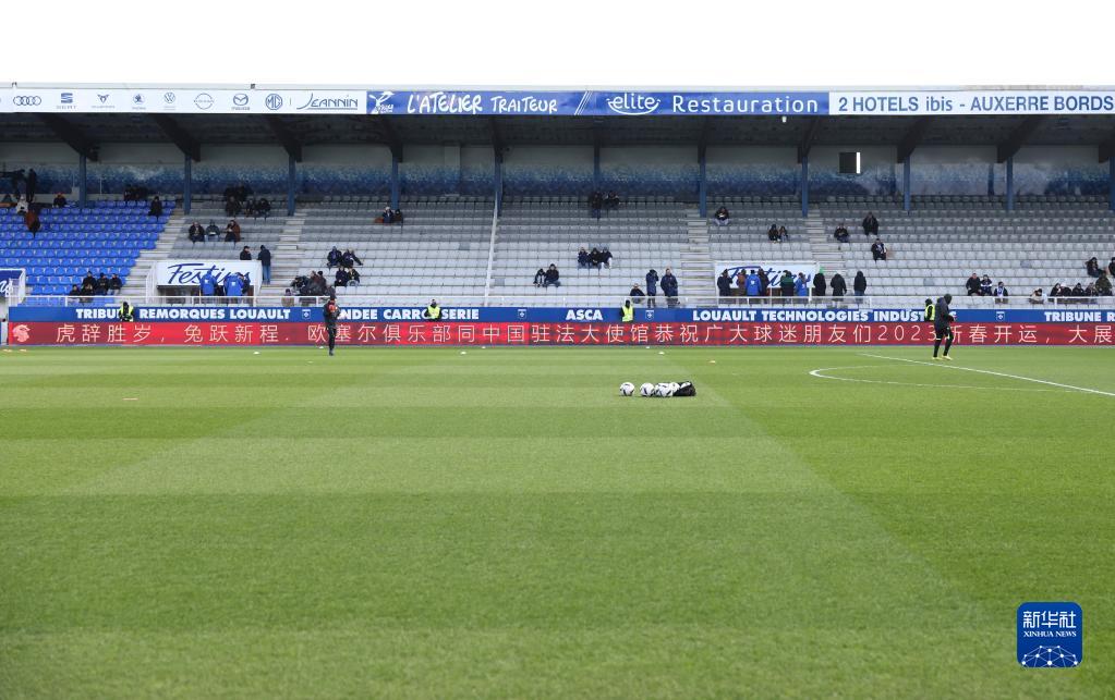 這是1月29日在法國歐塞爾足球俱樂部主場阿貝·德尚體育場內拍攝的“中國日”活動現場。