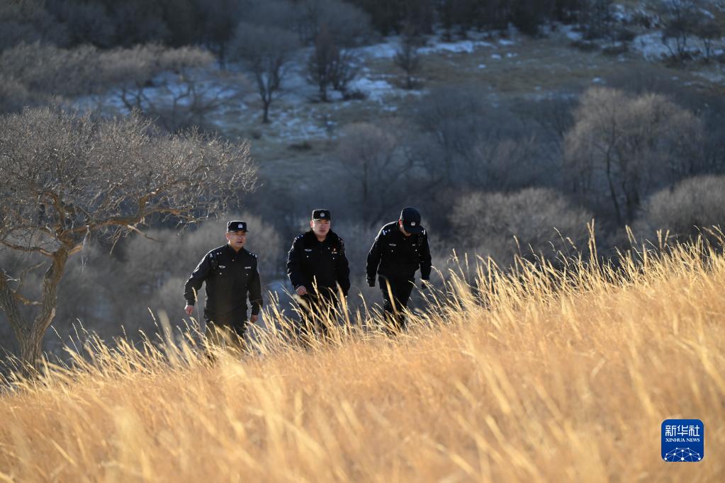 1月29日,多倫縣森林公安局灤河源國家森林公園森林公安派出所的民警在森林公園內巡邏。