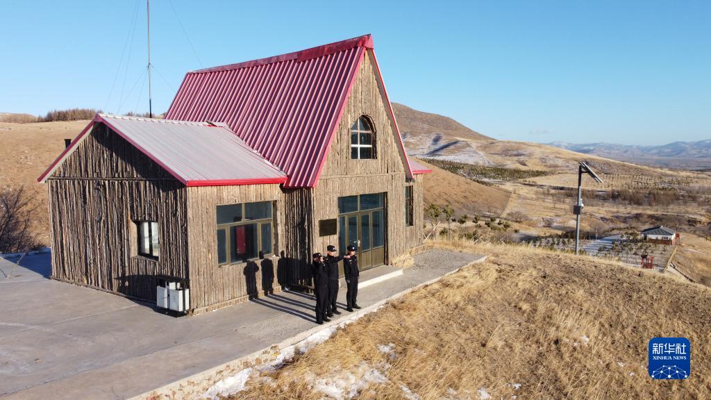 1月29日,多倫縣森林公安局灤河源國家森林公園森林公安派出所的民警在森林公園內巡查(無人機照片)。