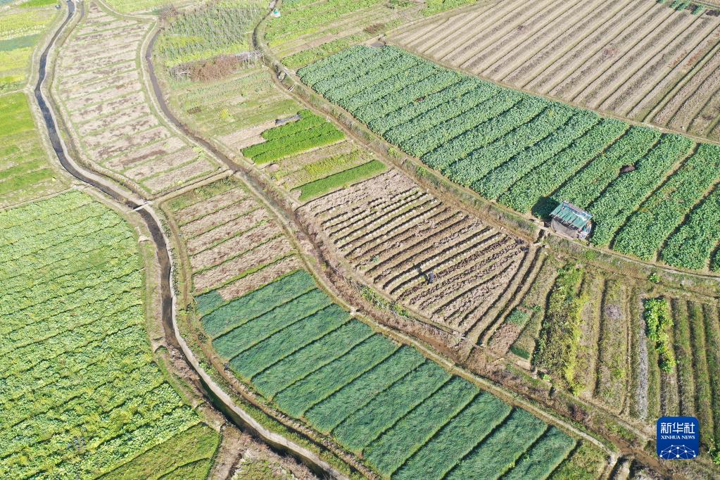 1月30日,在湖南省永州市道縣清塘鎮陳熊村,村民在翻地(無人機照片)。