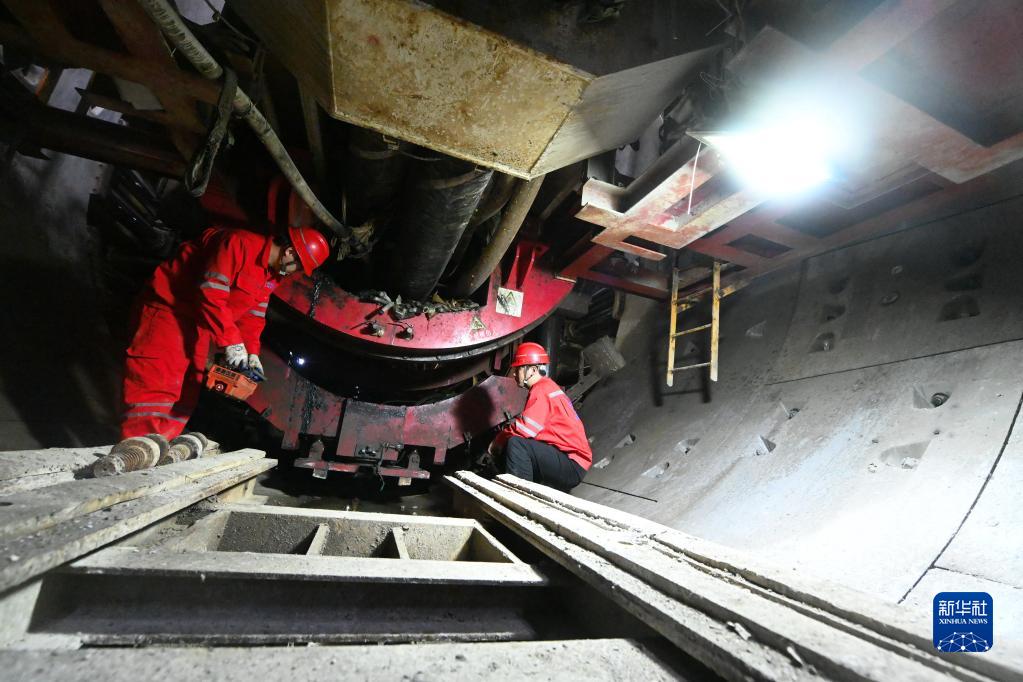 1月29日,施工人員在福州地鐵4號線金牛山站至洪塘站區間的下穿閩江底隧道內施工作業。