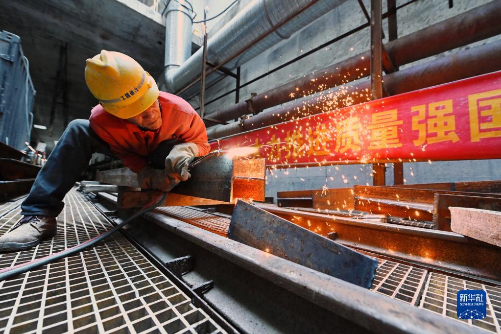1月29日,施工人員在福州地鐵4號線金牛山站至洪塘站區間的下穿閩江底隧道內進行切割作業。