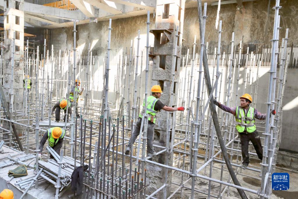 中鐵七局建設者在福州地鐵濱??炀€閩都站內施工(1月29日攝)。目前福州地鐵濱??炀€全線車站已動工,10個車站主體結構已封頂,19臺盾構機正在掘進。