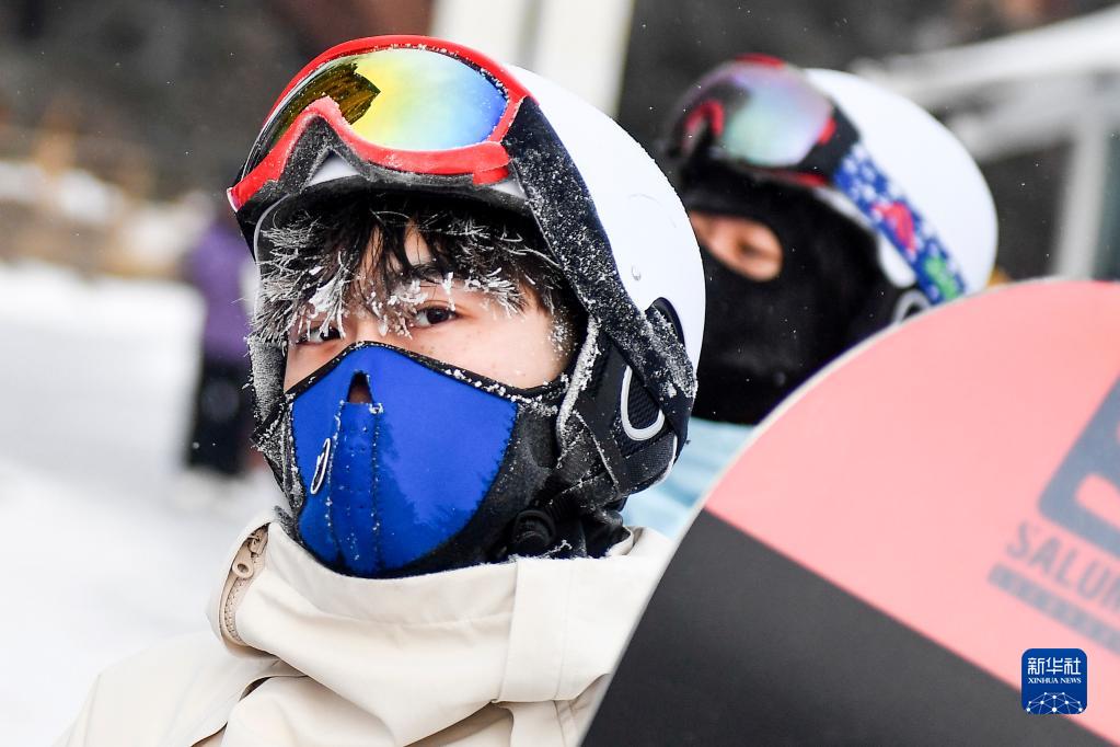在吉林市萬科松花湖度假區,一名滑雪愛好者的頭發上結滿了冰凌(1月23日攝)。