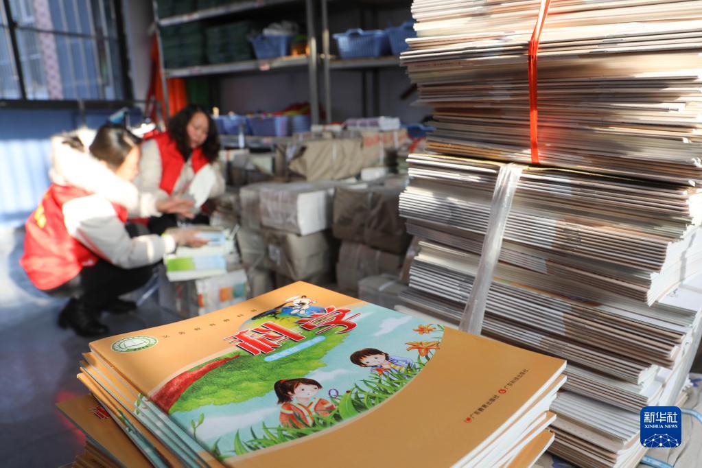 新學期開學臨近,各地書店、學校積極做好教材和教輔資料的清點、搬運、分發等工作,為開學做好準備。