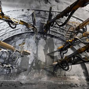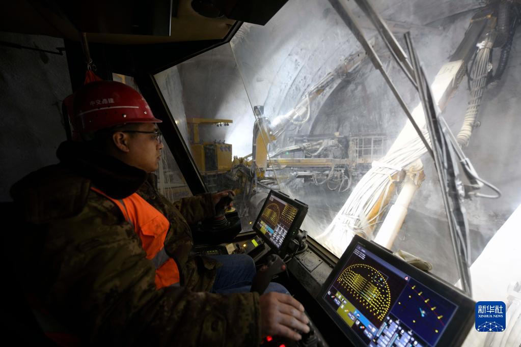 1月30日,在首都地區環線高速公路承德至平谷段楊家窩鋪特長隧道施工現場,工人操作機械進行鉆孔。