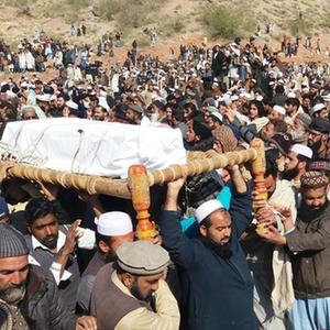 1月30日,在巴基斯坦西北部開伯爾-普什圖省,人們參加遇難者的葬禮。