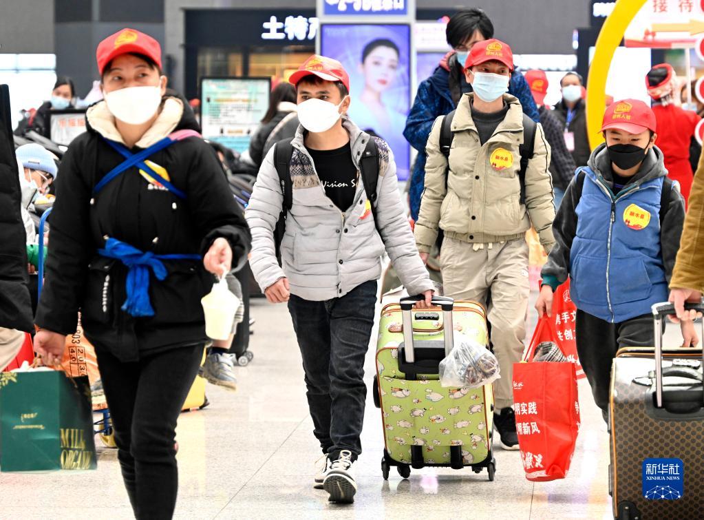 當日,2023年廣西柳州市首趟“點對點”送工服務專列D3755次列車從柳州火車站發車,500多名來自柳州市各縣區的務工人員乘坐動車前往廣東返崗復工。
