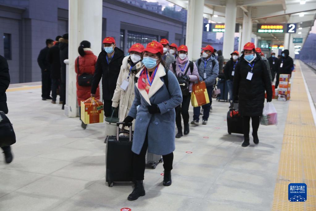 當日,500多名務工人員免費搭乘G1904次列車從定西北站出發,前往福建省福州市返崗務工,這是甘肅省今年開行的首趟返崗務工高鐵專列。