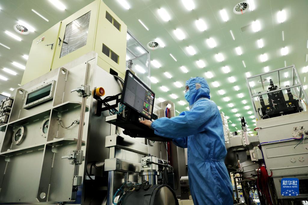1月30日,在安徽合肥新站高新區一家智能制造企業研發中心,技術人員在調試蒸鍍設備。