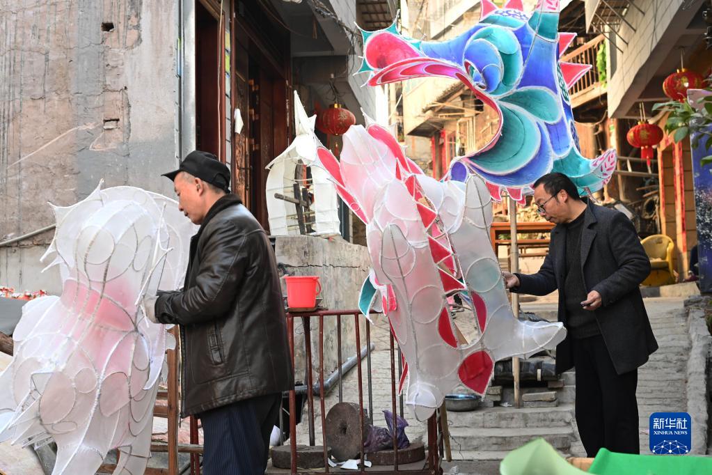 從正月初六開始,貴州省黔東南苗族侗族自治州臺江縣的民間藝人紛紛用紙、竹木條等材料趕制各式各樣的花燈和龍燈,迎接元宵節的到來。