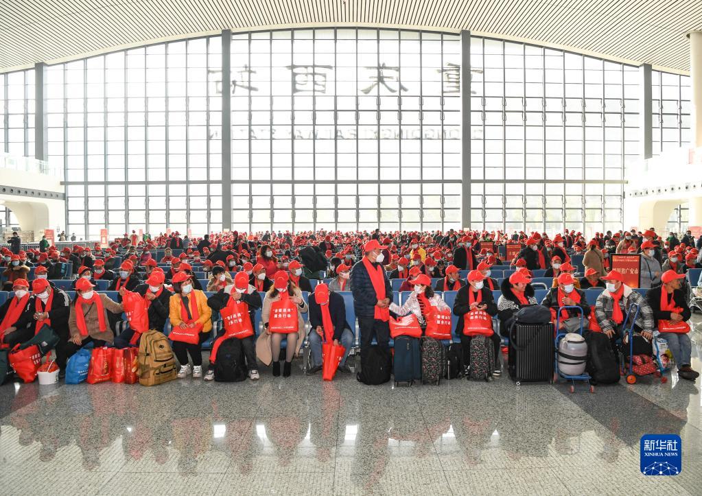 當日,由重慶西開往廣州南的D4881次務工專列順利開出,來自川渝兩地的約890名務工人員踏上返崗之路,這是2023年從重慶開行的首趟務工定制專列。