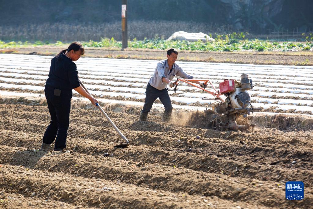 1月30日,廣西河池市鳳山縣鳳城鎮松仁村農民在整地。