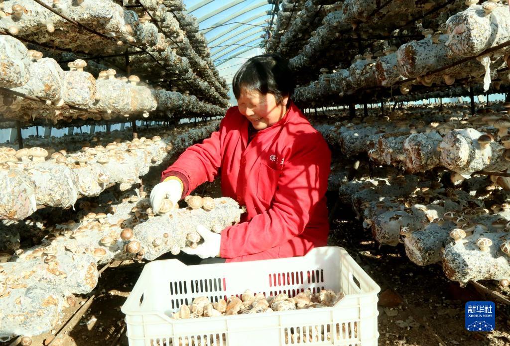 1月30日,在河南省洛陽市汝陽縣十八盤鄉蒿坪村,一家種植專業合作社的菇農在采摘香菇。