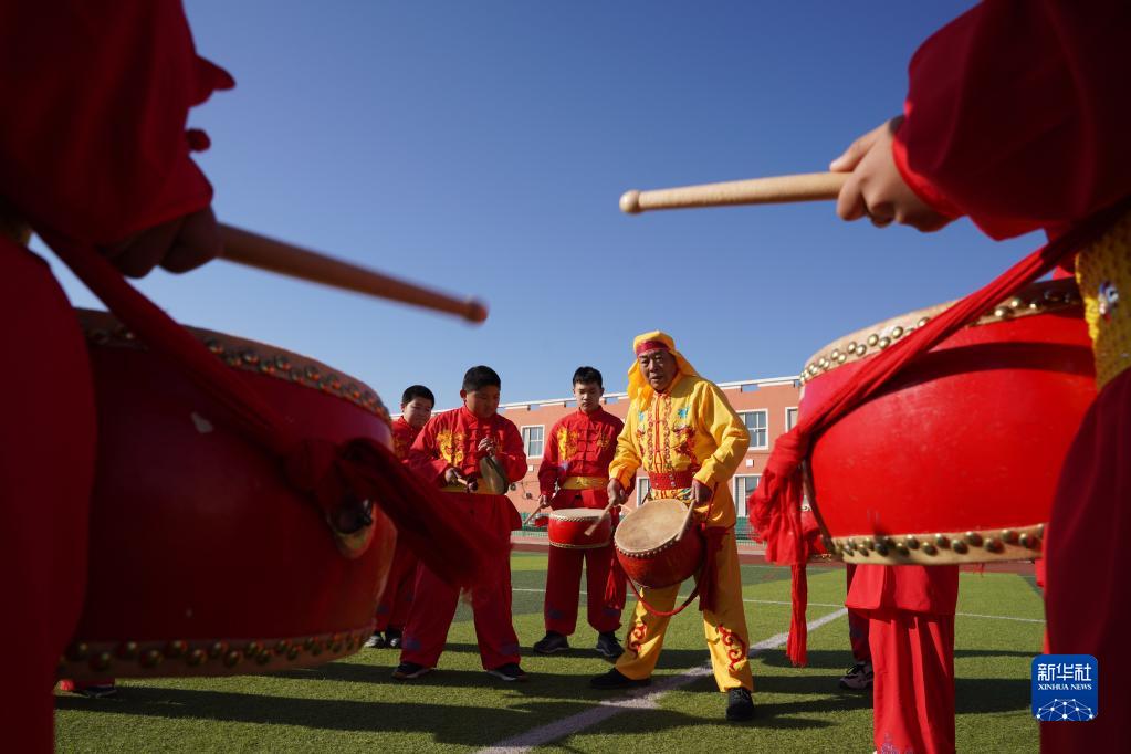 寒假期間,河北省邢臺市內丘縣官莊中心小學開設文化課堂,邀請當地排鼓藝人向學生教授排鼓知識,讓學生感受家鄉文化的魅力,豐富假期生活。
